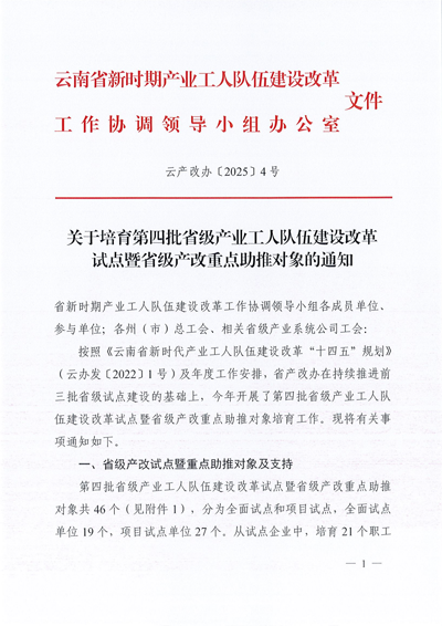 按照《云南省新時代產(chǎn)業(yè)工人隊伍建設改革“十四五”規(guī)劃》(云辦發(fā)[2022]1號)及年度工作安排,云南省產(chǎn)改辦在持續(xù)推進前三批省級試點建設的基礎上,于今年開展了第四批省級產(chǎn)業(yè)工人隊伍建設改革試點暨省級產(chǎn)改重點助推對象培育工作。