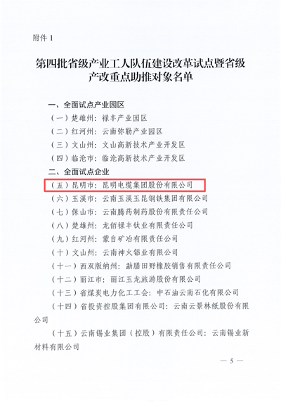 近日,云南省新時期產(chǎn)業(yè)工人隊伍建設改革工作協(xié)調(diào)領導小組辦公室下發(fā)相關通知,昆明電纜集團股份有限公司憑借在產(chǎn)業(yè)工人隊伍建設領域的扎實積淀,成功入選第四批省級產(chǎn)業(yè)工人隊伍建設改革試點暨省級產(chǎn)改重點助推對象。